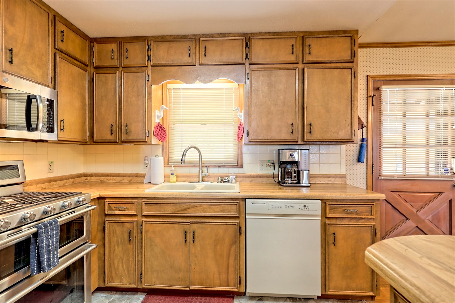 The fully equipped kitchen makes meal prep a breeze, or take it outside to the grill on the open porch. Dine together on the large screened porch, sip morning coffee on the covered porch, and enjoy the sounds of nature all around.